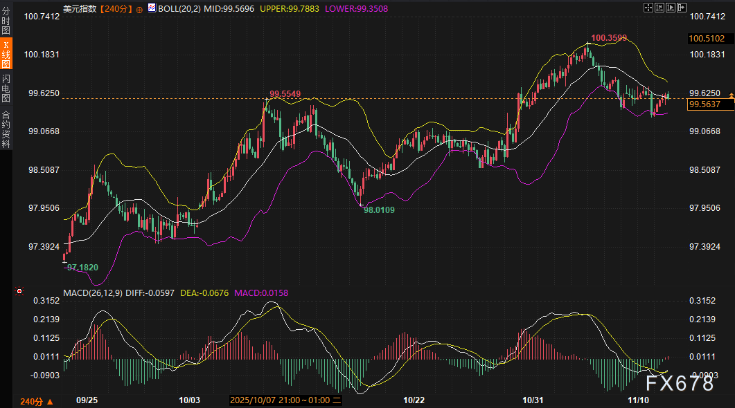 在这一框架下,美元指数的温和回升并非孤立事件,而是对财政进展的即时反应。DXY从周二两周低点反弹,结束了五日连跌,反映出市场对关门结束的初步定价。然而,这一反弹的可持续性高度依赖于后续数据验证:若延迟的官方就业报告延续私营部门的软化基调,美元的多头动能将迅速消退;反之,任何意外韧性都可能强化美联储的观望姿态。基本面逻辑的推进,正从政治事件向经济指标平滑过渡,未来2-3日,这一衔接将决定美元是否能巩固99.60关口附近的企稳。